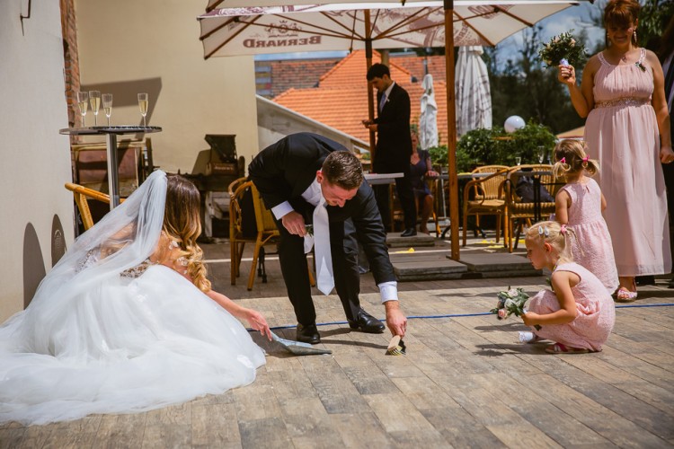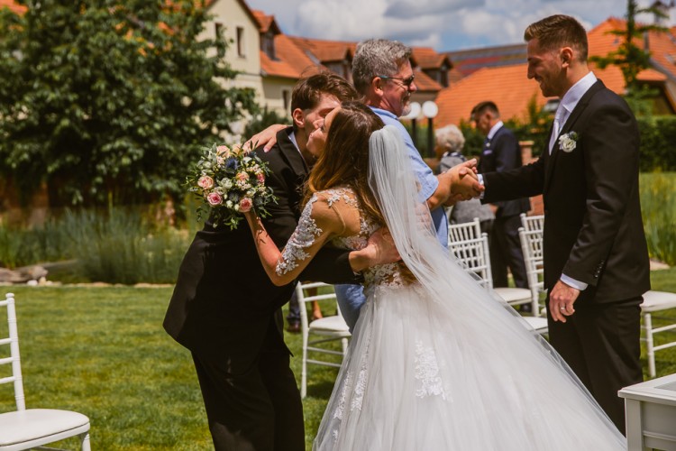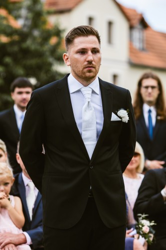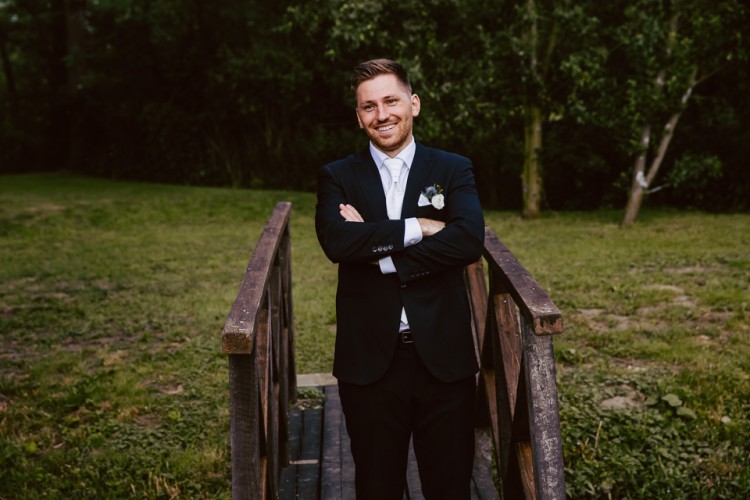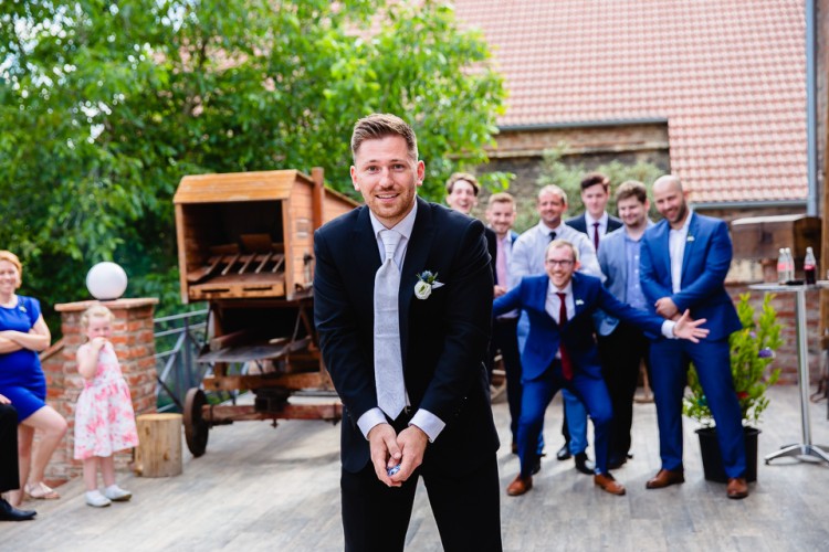šťastný ženich na svatbě Dvůr Hoffmeister