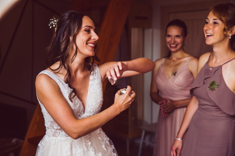 Svatby fotím již od roku 2014. Za tu dobu jsem měla příležitost navštívit řadu svatebních míst v Praze a jejím blízkém okolí. Setkala jsem se s mnoha zajímavými lidmi, jak z řad mých klientů – novomanželů, tak z řady dalších svatebních profesionálů jako jsou vizážistky, kadeřnice a DJové. K nafocení svatby používám profesionální fotografickou výbavu. Nyní vlastním dva fotoaparáty Canon, oba dva jsou fullframe. K dispozici mám 2 pevné objektivy s vysokou světelností, což mi umožňuje fotit i za slabého osvětlení bez blesku a zachytit tak atmosféru situace. K těmto objektivům používám navíc ještě objektiv se zoomem v situacích, kdy svatebnímu dění nemohu být tak blízko. Součást mojí fotografické výbavy pro focení svatby tvoří dvě i odrazné desky různé velikosti.